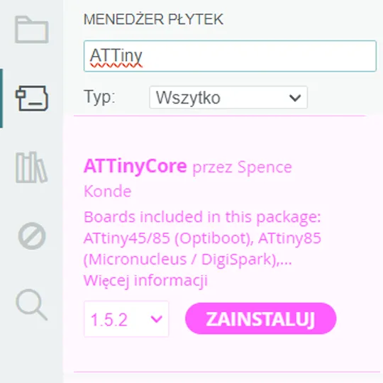 W menedżerze płytek należy odnaleźć bibliotekę, którą widzimy i zainstalować ją. Z pewnością pojawią się komunikaty żądające potwierdzenia instalacji sterowników, dlatego będziemy musieli pracować w trybie admina.