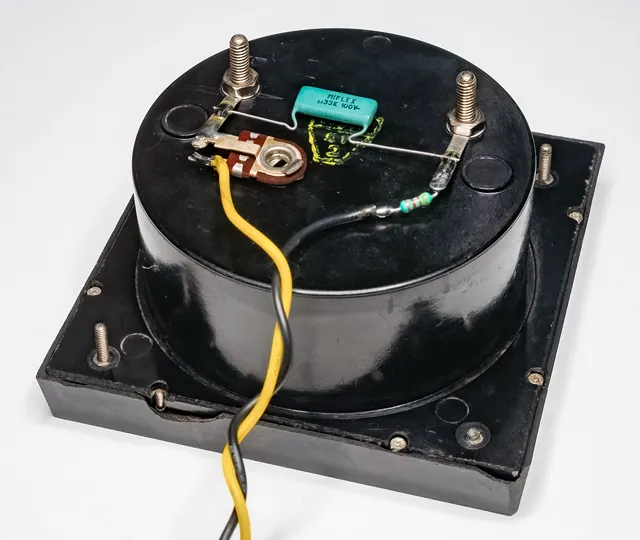 Teraz słówko o niekończących się dyskusjach w internetach: woltomierz to czy amperomierz? Bezpiecznie powiedzmy tak: na razie jest to ustrój, a czym się stanie – zależy od tego jak to podłączymy. Zmierzony opór cewki to 139 omów, wychylenie pełne następuje, gdy prąd płynący przez nią sięga 1,08 mA, a dzieje się to po dostarczeniu 155 mV. To są wartości zmierzone i mniej więcej każda z nich wynika z prawa Ohma z pozostałych dwóch. Znalazłem tę wersję w katalogu, ale skala pierwotnie była wycechowana w woltach i sięgała ich aż 150. I rzeczywiście, wewnątrz znalazłem odpięty rezystor o wartości 150 kΩ. Ktoś jednak urządzenie to przerobił, podłączając bezpośrednio wyprowadzenia do cewki i modyfikując napisy.